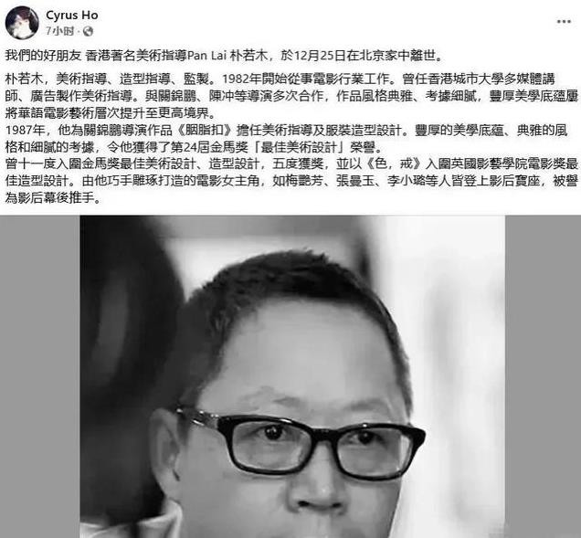 这位在中国香港电影界享有殊荣的好意思术及造型伙同,他的离去,无疑是电影艺术边界的一大耗费。