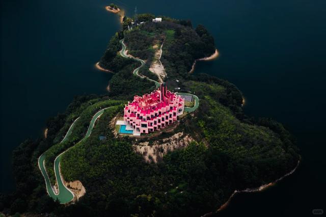 而湖上那座造型格外的粉色城堡,更是将童话照进了实践。它与周围的绿水青山形成明显对比,却又古迹般地协调,仿佛是不戒备遗落在东说念主间的糖果屋,为这片山水增添了一抹梦幻的颜色。