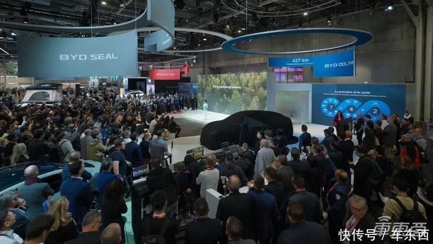 ▲巴黎车展上的比亚迪展台东说念主山东说念主海