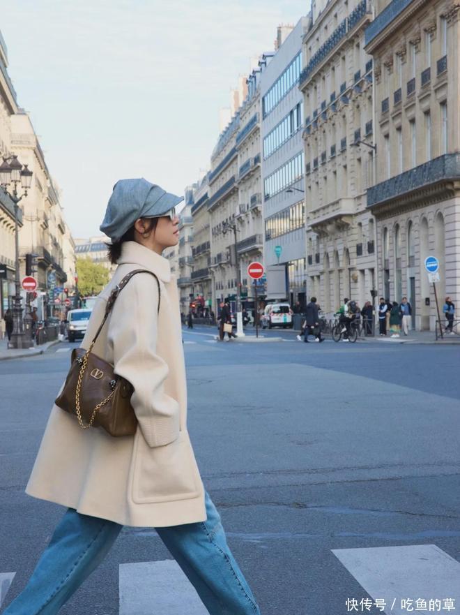 像这种中长款的白色大衣,很允洽小个子穿。内搭白色毛衣,高等又端淑,大略热心一总共这个词冬季。当白色系占比拟大,就要用其他的色调进行均衡,举例灰色报童帽、棕色托特包,齐不错丰富造型。
