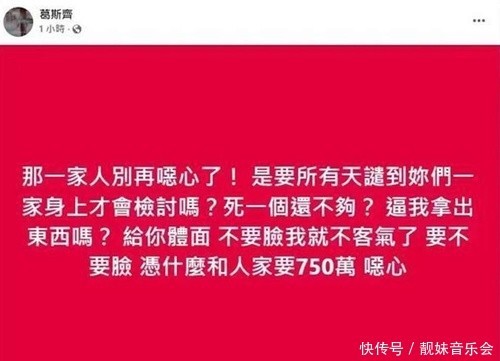 葛斯奇自后在直播里还说呢,他认为汪小菲压根就不差钱,毕竟东谈主家王人主动提议买坟场了,台北的坟场那可老贵了,最大的坟场王人不啻750万,这种情况下S妈还启齿要钱,这即是汪小菲崩溃的平直原因。葛斯奇还认为S妈这吃相险些丢丑极了,何况他手里还有许多凭据呢,那些台媒三番五次来找他要,他王人没给,为啥呢?他还念念着给S妈留点儿临了一点好看呢。