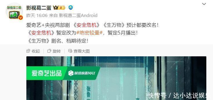 不外好音问终于传来,证据巨擘电视剧博主爆料,40集国安反特谍战大剧《安全危境》,笔名《绝密较量》,将于五月份,登陆央视黄金档和爱奇艺,慎重开启首播。