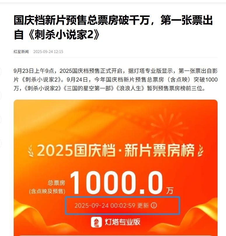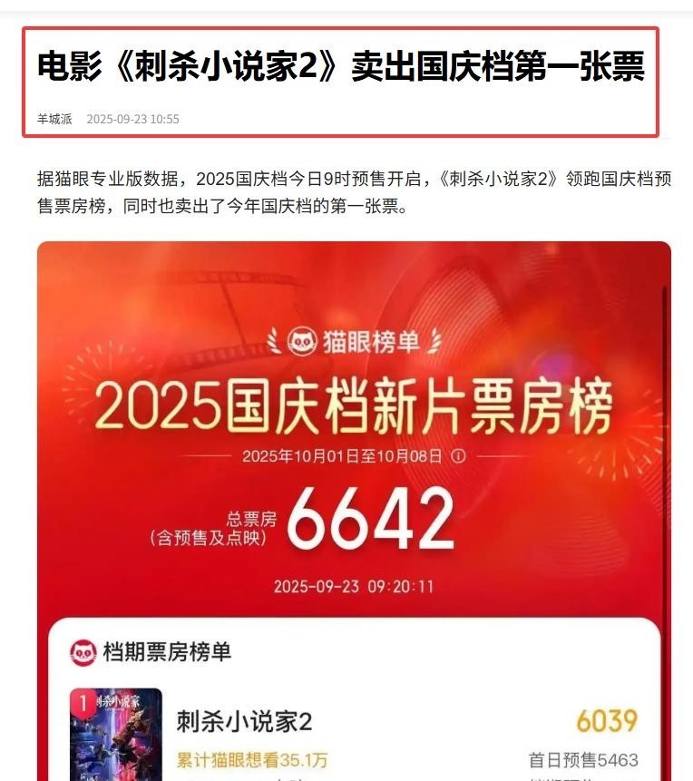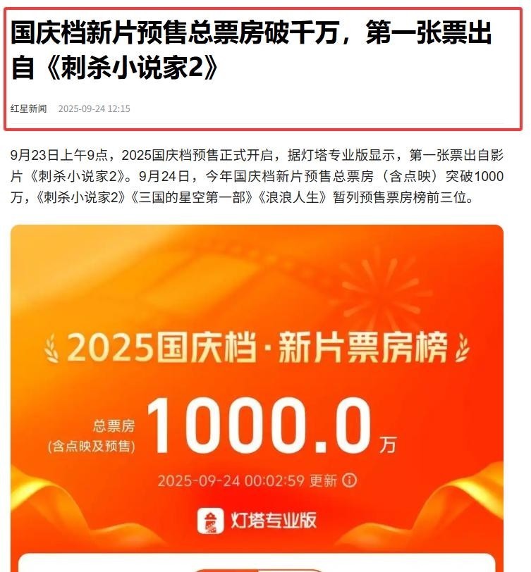 52. 国庆档电影预售开启不到24小时,合座票房已放荡千万元大关。