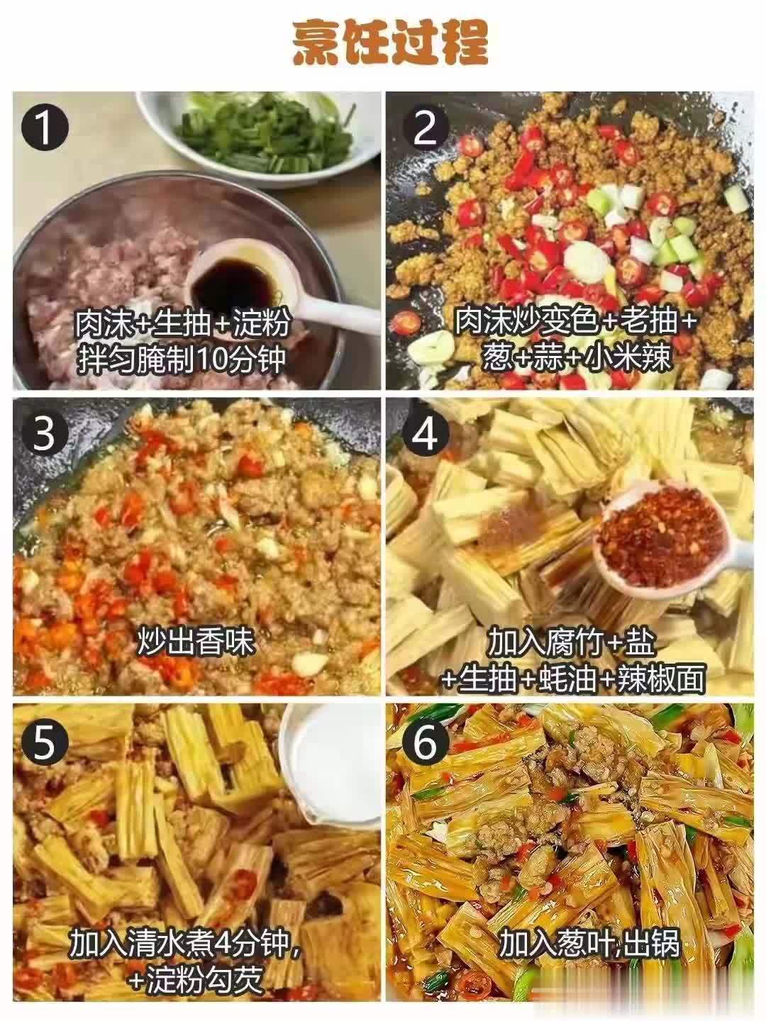 4. 加1勺生抽、半勺盐调味,加2勺净水焖2分钟(让腐竹入味)即可。特质:腐竹吸饱肉香,软嫩多汁,高卵白低脂肪,甲流规复期必吃!升级版:加1勺木耳或胡萝卜同炒,口感更丰富,养分更全面。