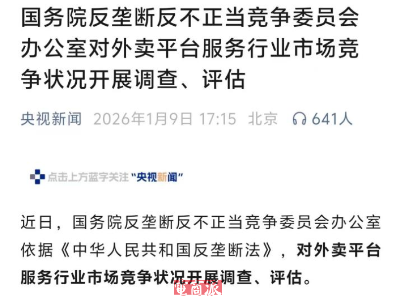 时间来到2026年1月,国务院反独揽反不梗直竞争委员会办公室依据《中华东谈主民共和国反独揽法》,对外卖平台服务行业市集竞争情状开展造访、评估。