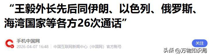 2026-04-07手机中国网《“王毅外长先后同伊朗、以色列、俄罗斯、海湾国度等各方26次通话”》